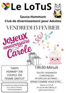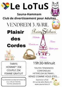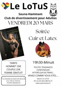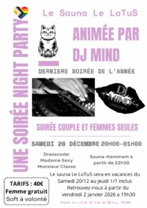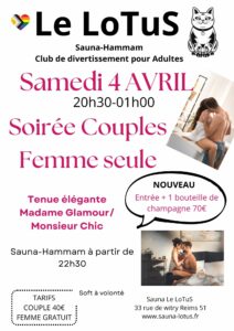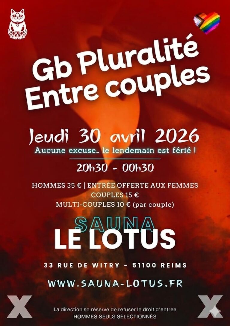 Le mercredi et le samedi, Le Lotus propose une ambiance entièrement dédiée aux hommes souhaitant partager un moment de détente, de complicité ou de découverte dans un cadre respectueux et discret. Une atmosphère idéale pour rencontrer, échanger et profiter d’un espace masculin chaleureux.