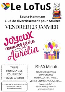 Installé dans la Marne, Le Lotus est devenu une adresse incontournable pour les libertins venus des Ardennes, de l’Aisne et de la Seine-et-Marne. Notre sauna club séduit par son ambiance élégante, son cadre convivial et son atmosphère sécurisée où chacun peut vivre le libertinage à son rythme, en toute discrétion et avec simplicité.