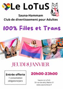 Le mercredi et le samedi, Le Lotus propose une ambiance entièrement dédiée aux hommes souhaitant partager un moment de détente, de complicité ou de découverte dans un cadre respectueux et discret. Une atmosphère idéale pour rencontrer, échanger et profiter d’un espace masculin chaleureux.