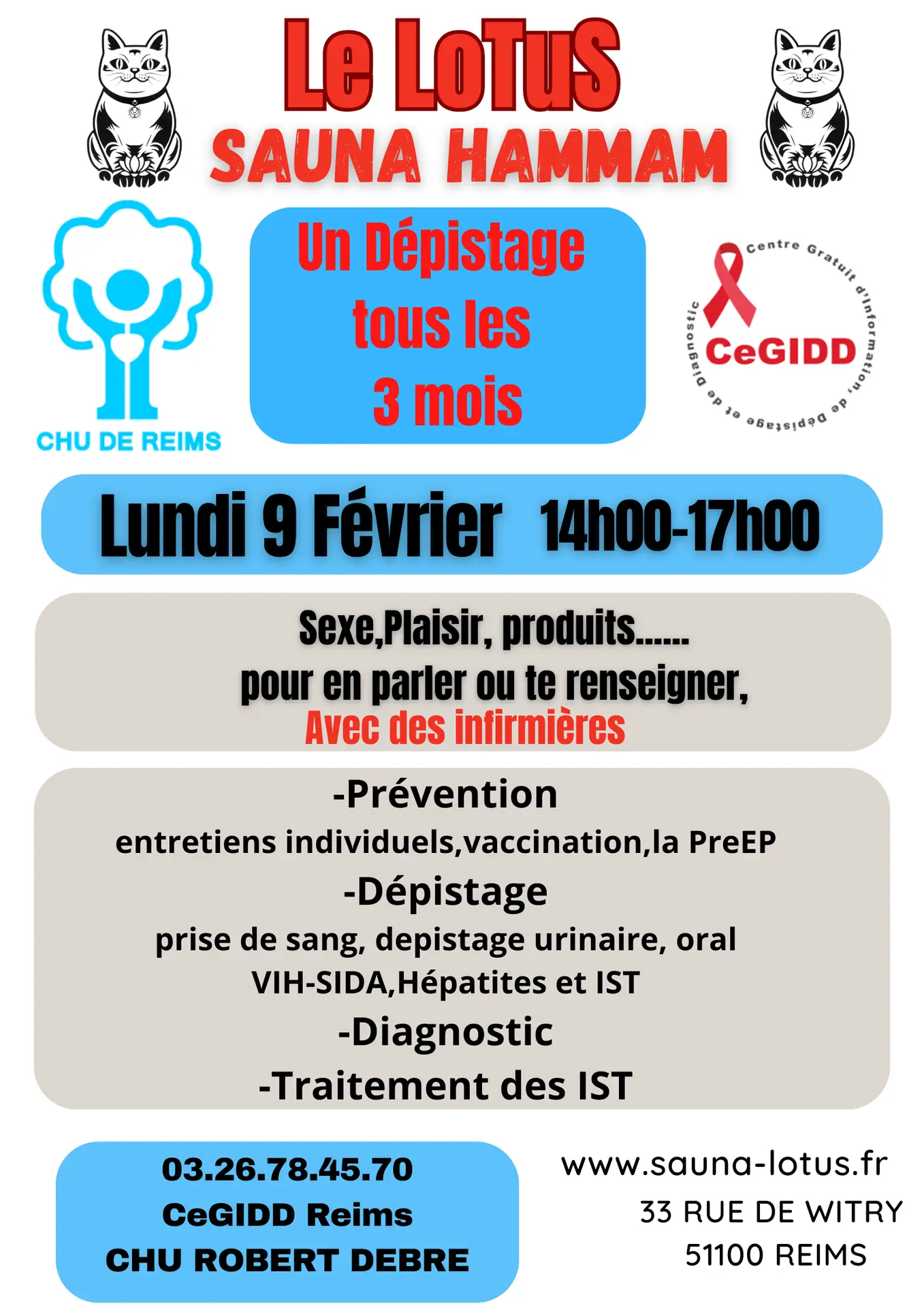 Articles récents Vacances d’été Planning de juillet Bukkake le dimanche 30 juin Planning Juillet 2024 Planning Juin 2024 Archives Archives Sélectionner un mois août 2024 juillet 2024 juin 2024 avril 2024 mars 2024 février 2024 janvier 2024 août 2023 juin 2023 mai 2023 avril 2023 mars 2023 février 2023 janvier 2023 novembre 2022 octobre 2022 septembre 2022 septembre 2019 août 2019 Date 09 Fév 2026 Heure 14h00 CeGIDD Venez vous faire dépister auprès des infirmières du CEGIDD Partagez cet événement + Ajouter à mon Agenda Google + iCal / Outlook export 00 jours 00 heures 00 minutes 00 secondes