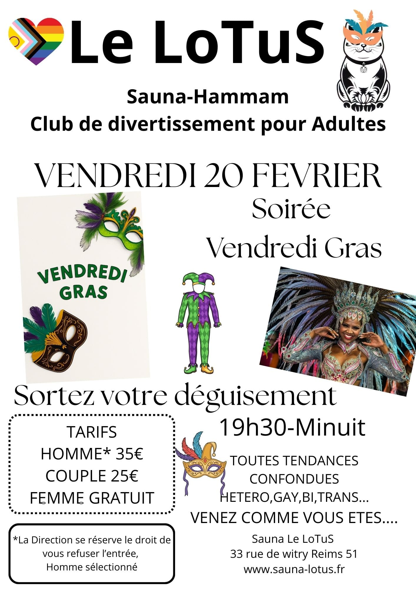 Articles récents Vacances d’été Planning de juillet Bukkake le dimanche 30 juin Planning Juillet 2024 Planning Juin 2024 Archives Archives Sélectionner un mois août 2024 juillet 2024 juin 2024 avril 2024 mars 2024 février 2024 janvier 2024 août 2023 juin 2023 mai 2023 avril 2023 mars 2023 février 2023 janvier 2023 novembre 2022 octobre 2022 septembre 2022 septembre 2019 août 2019 Date 20 Fév 2026 Heure 19h30 Vendredi Gras Sortez vos plus beaux déguisements pour le carnaval du LoTuS Partagez cet événement + Ajouter à mon Agenda Google + iCal / Outlook export 00 jours 00 heures 00 minutes 00 secondes